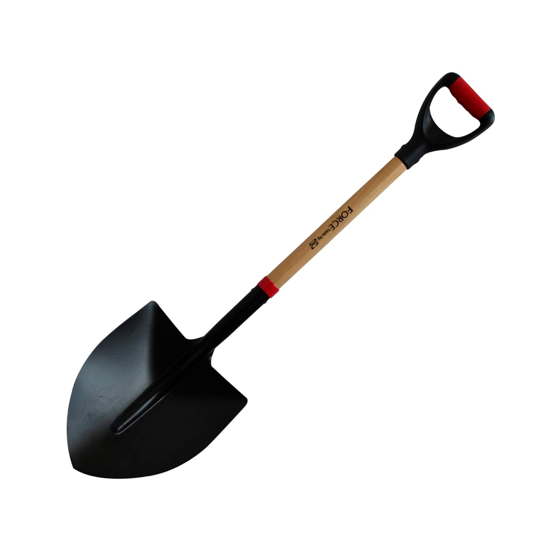 Pala punta huevo mango de madera asa de goma