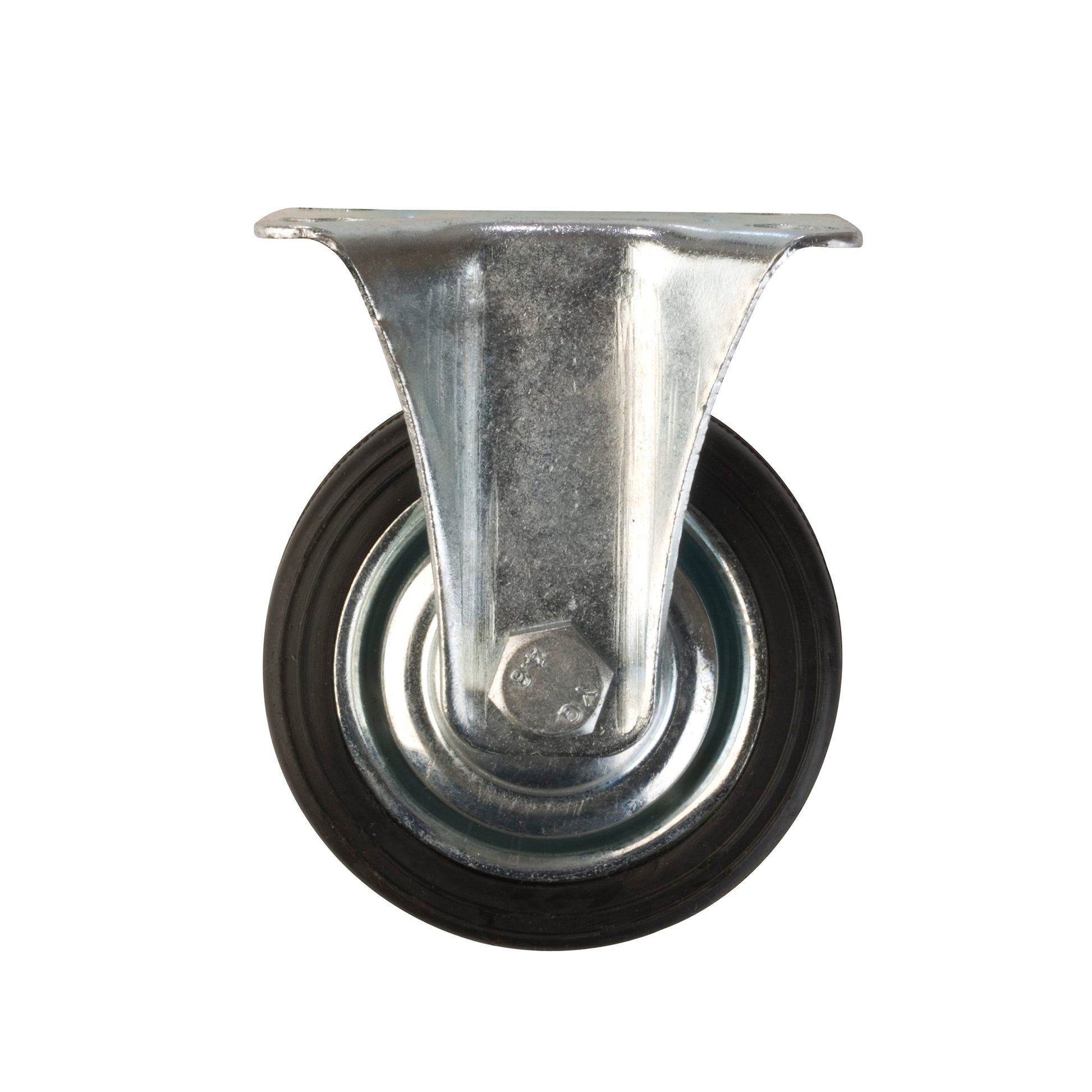 Rueda de goma con llanta metálica y base fija sin freno